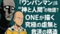 これらの視点を通じて、『ワンパンマン』という作品は単なるギャグやバトルものにとどまらず、「人間とは何か」「強さとは何か」を問いかける深いテーマ性を孕んでいることが明らかになります。