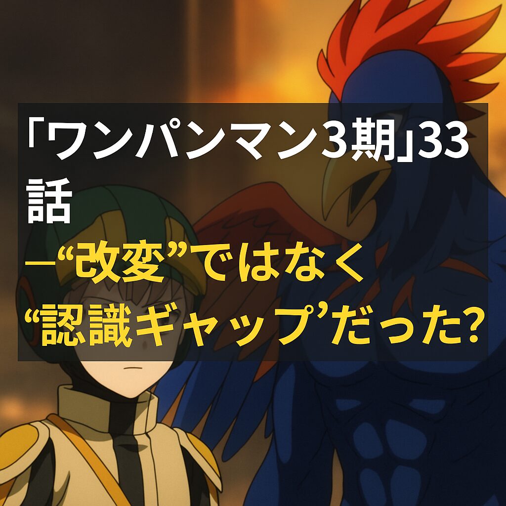 『ワンパンマン』第3期33話をめぐって、「精神世界カット」「神伏線消滅」「サイタマのあのセリフは?」と、ファンの間で議論が続いている。だけど、本当に“改変された”のか──それとも、そもそも“元からなかった要素”との混同なのか。