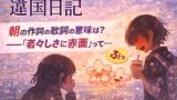 あの沈黙と目の逸らし方、ただの照れで済ませていいのか迷うよな。朝は軽音部で焦って、ギリギリの気持ちで歌詞を書いて、「全然パッとしない」と自分を殴ってた。その直後に起きた赤面と、さらに重なる日記の火種。偶然にしては配置ができすぎてる。あの一瞬に何が交わったのか――そこを追わないと、この回の本当の温度は見えてこない。