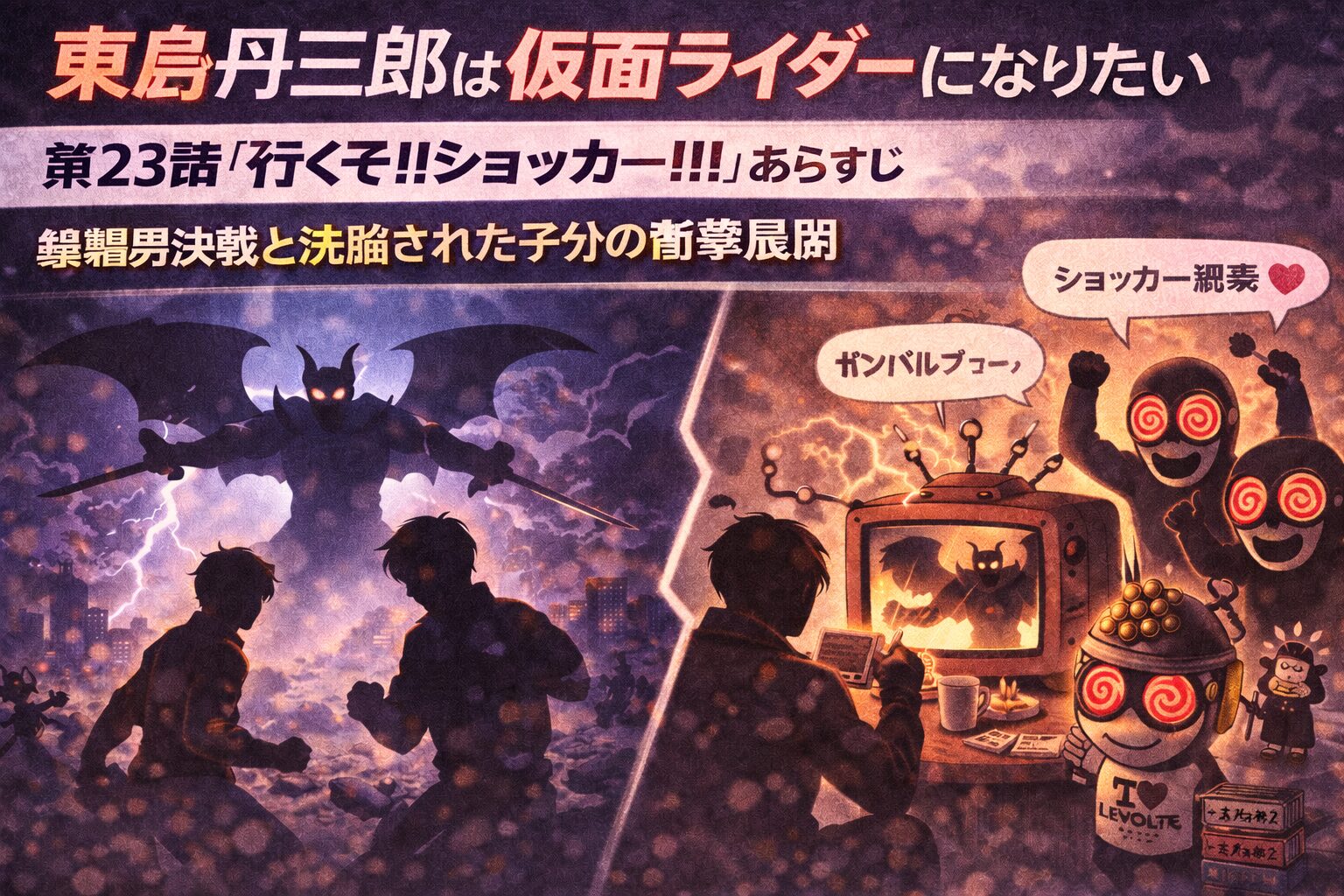 【東島丹三郎は仮面ライダーになりたい】第23話「行くぞ‼ショッカー‼‼」あらすじ|蝙蝠男決戦と洗脳された子分が突きつける地獄