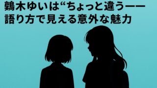 キャラクター個人 ざつ旅|鵜木ゆい──ちかを慕う歴史ツウ後輩の“天然かわいい解説力”の正体とは? 「旅の景色は覚えても、ガイドの言葉ってなぜか心に残ることありませんか?」鵜木ゆいは、『ざつ旅』でちかたちに自然体で歴史解説を差し込む、小さな世界のガイド役。無邪気なテンションの裏には、「先輩の隣で一緒に歩きたい」という真っ直ぐな想いがあるの... 2025.09.03 キャラクター個人