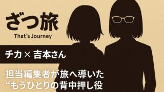 キャラの関係性 ざつ旅|ちか × 吉本さん|担当編集者が旅へ導いた“もうひとりの背中押し役” 「編集者って、よく見たら鬼だったり優しかったりしますよね…」「ざつ旅」では、ちかの最初の担当・吉本翔子さんが“旅に出なさい”と押してくれる、編集者らしからぬ優しさが印象的です。必要なのは、ただイエスを言ってくれる人ではなく、心を動かすひとこ... 2025.09.10 キャラの関係性