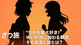 キャラの関係性 ざつ旅|“ちか先輩大好き!”ゆいが旅に加わる瞬間、その成長と絆とは? なんとなく後輩と旅に出るって、遠慮もあって気まずくありませんか?『ざつ旅』では、ちか先輩に憧れる歴史好きの高校生・ゆいが、距離を縮めて仲間になっていくんです。この記事では、ゆいが“後輩”から“旅の同志”へ変わる意外な瞬間と、その裏にある成長... 2025.09.07 キャラの関係性