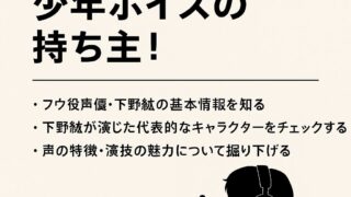 アニメ『ガチアクタ』で“フウ”を演じるのは、人気声優の下野紘。ふだんは頼りなさげな“気弱キャラ”だったフウが、人器「ヒイ」との憑依で豹変したあの衝撃──それを可能にしたのが、演じる声の“振り幅”と“演技力”だった。この記事では、下野紘のこれ...